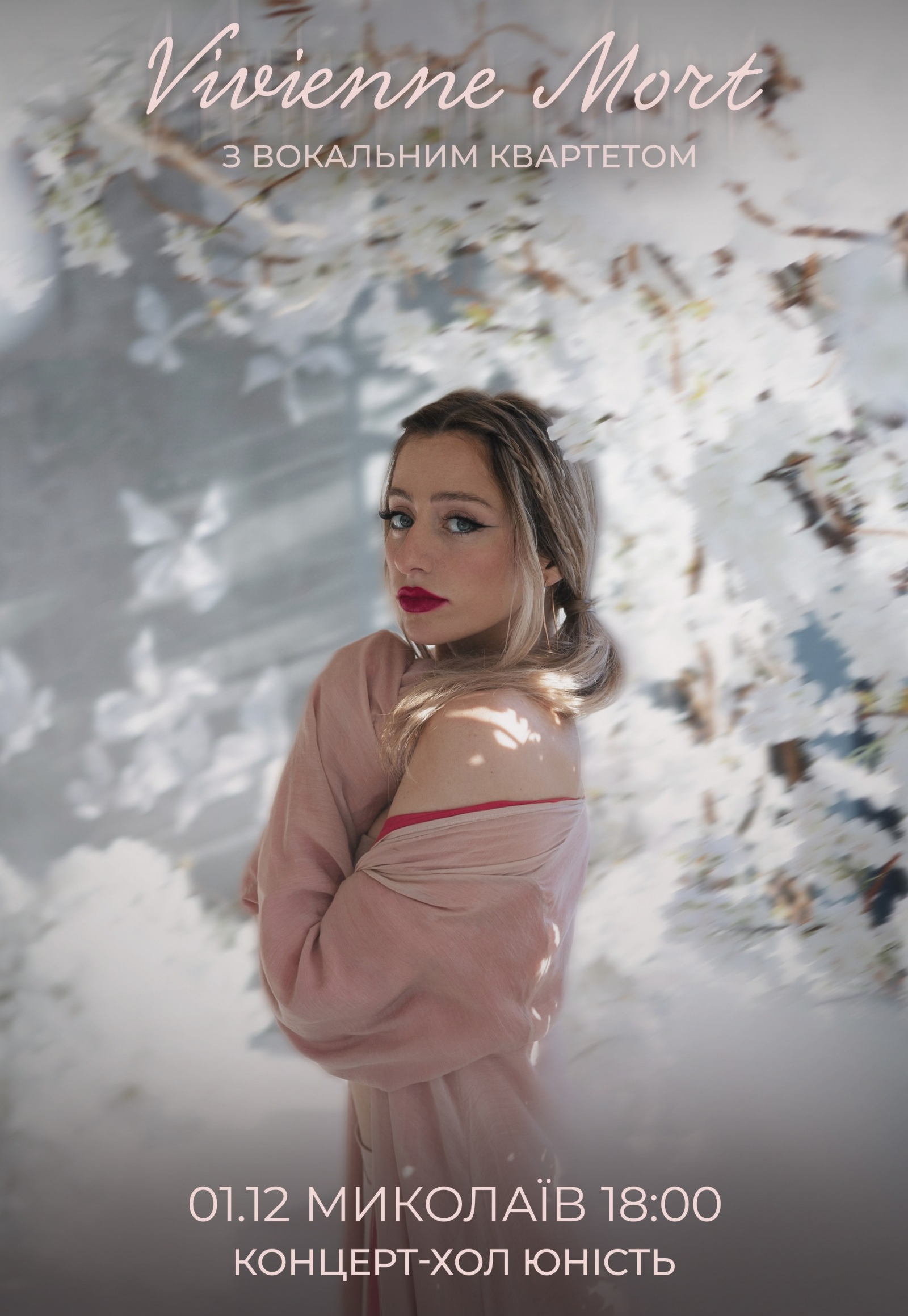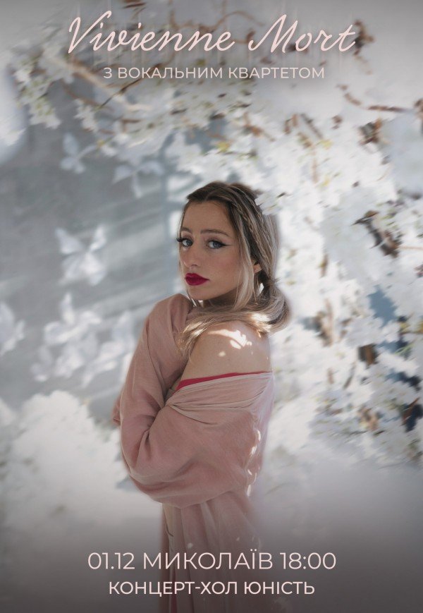 Vivienne Mort с вокальным квартетом состоится 1 декабря 2025, 18:00, понедельник в Концерт-холл «Юность». С помощью сервиса internet-bilet.ua, Вы сможете с легкостью забронировать, заказать и купить билеты на интересующий Вас концерт, спектакль, оперу, балет, мастер-классы, спортивные и детские мероприятия, оплатив их самым удобным для Вас способом: через интернет банковской картой VISA/MasterCard, наличными или курьером, если сделаете заказ билета c доставкой.